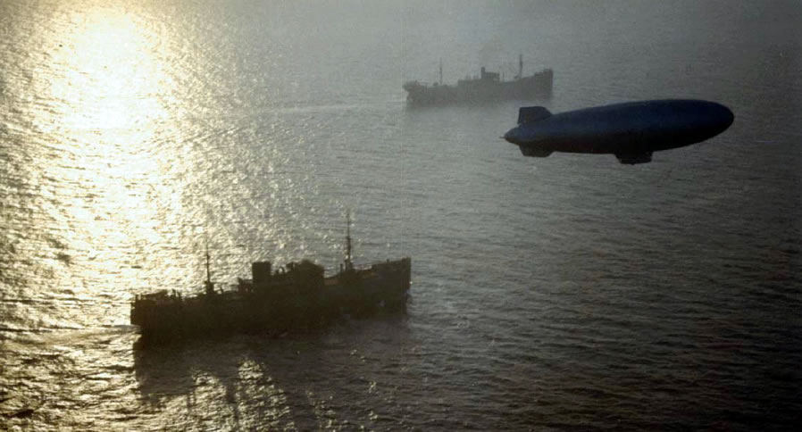 Grills nadó alrededor de la hundida cabina para asegurarse de que todos habían escapado. Al hacerlo, se separó de sus compañeros y la fuerte corriente del Golfo le impidió volver. Cuando consiguió orientarse, el dirigible ya no estaba a la vista. En su lugar, una oscura figura se dirigía hacia él a toda velocidad; era uno de los barcos que navegaba ignorante del combate que acababa de librarse. Grills recordaba: “Venía directo hacia mí, y yo estaba como loco por apartarme de su camino, gritando y agitando mis brazos. Vi al serviola en su puesto, fumando un cigarrillo.” El buque pasó en medio de la noche, dejando a Grills solo en el agua.