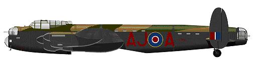 El 617 Escuadrón utilizó aviones bombarderos Lancaster, rotulados con las letras "AJ", "KC", "YZ" y “B.I.”, este último rótulo destinado a las unidades que utilizaban las bombas “Grand Slam”. |
