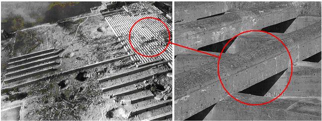 En la imagen de la derecha podemos ver el techo del búnker de Brest con cráteres perforados. |