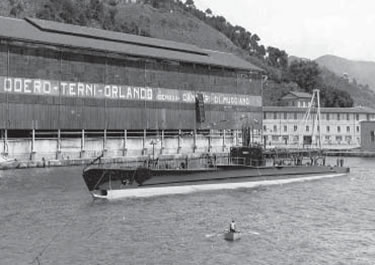 ![]() Submarino Ct. Cappellini en la dársena de los astilleros «Odero Terni Orlando» en La Spezia (Italia). (Foto vía BETASOM XI Gruppo Sommergibili Atlantici). |