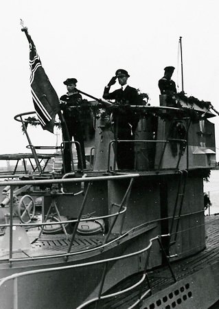 La primera razón era porque el buque no entraba a formar parte de la Kriegsmarine hasta que no estuviera terminado y en disposición de entrar en servicio. Hasta entonces era propiedad y responsabilidad del astillero. Después de la ceremonia, el buque pasaba a pertenecer oficialmente a la Kriegsmarine y a su estructura de Mando, pudiendo ser ya ocupado por su dotación. La ceremonia era un simple pero importante acto en el cual la tripulación y los oficiales se reunían en cubierta y eran inspeccionados por su Comandante, quien caminaba de arriba abajo (en alemán: die Front abschreiten). Entonces, el responsable de la unidad subía a la torreta y soltaba un discurso que había preparado para la ceremonia. El texto que leía contenía datos referentes a barcos de su mismo número que había participado en la Primera Guerra Mundial, algunas palabras para fortalecer la moral de la tripulación y otras con contenidos políticos de entonces (esto podía variar de Comandante a Comandante). Después acababa el discurso con las importantes palabras: “Heiß Flagge und Wimpel” (Izar la bandera y el banderín del comandante) y la Bandera de Guerra era izada en el buque. Tras ello, el sumergible o submarino pasaba a pertenecer oficialmente a la Kriegsmarine. |