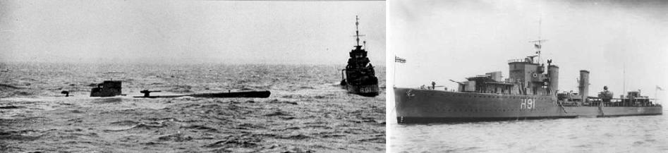 ![]() A la izquierda la dotación del U-559. A la derecha el HMS Petard -G65-. |