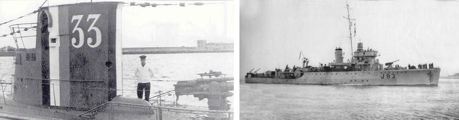 ![]() El HMS Loch More y el KL Hans-Joachim Gutteck. |