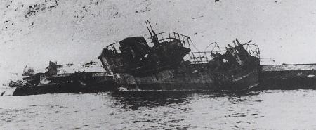 ![]() Los restos embarrancados y barrenados del U-852 en la costa somalí. |
