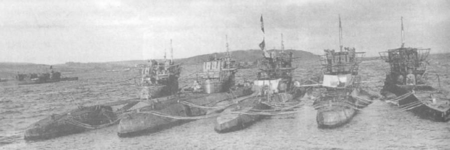 Varios uboote rendidos amarrados en loch Ryan |