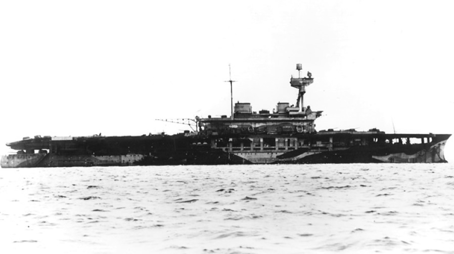 La rapidez con la que se hundiría el portaviones, causaría fallos en todos los sistemas de comunicación, con lo que la orden de abandonar el buque solo pudo ser transmitida “boca a oreja”. Entonces sorprende que hubiera tantos supervivientes (900 de una tripulación de unos 1.100) no solo por el hecho de lograr transmitir la orden de abandonar el buque, si no por el simple hecho de que la tripulación se encontraba en marcha en el momento del ataque. Concretamente de los puestos de ataque a los de defensa (Action Stations, Defence Stations). A pesar de todo, el número de supervivientes es impresionantemente alto, y más teniendo en cuenta que ninguno de los botes del buque podía ser utilizado, ya que se encontraban en la banda de babor, banda que quedaría sumergida en tres minutos. Y los de la banda de estribor no podían ser utilizados por la escora del portaviones. |