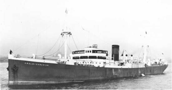 El mercante Anglo-Canadian, de 5,628 toneladas: Primera víctima del U153 el 25 de junio de 1942. |
