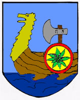 En cuanto al agua, Dorothy MacDowell(38) le preguntó por ella cuando entrevistó al teniente Dorsey Lybrand, jefe de los artilleros navales, y escribió que “los hombres de la balsa pidieron agua, pero hubo un malentendido o una negación deliberada”. Dado que el U153 había suministrado agua a los náufragos del Anglo-Canadian solo 48 horas antes, podría ser que la tripulación de U153 no se diera cuenta de la urgente necesidad de agua que tenían los supervivientes del Potlatch. Si lo hubiesen sabido, basándonos en la reciente experiencia, se la habrían dado. Después de todo, el U153 era capaz de potabilizar agua de mar. Las anotaciones de McDowell indican que el sumergible “se sumergió sin dejar muertos ni heridos”, como si los hombres se sintieran aliviados de que el uboot no les disparara en el agua, como los propagandistas aliados les habían hecho creer que pasaría(39). La tripulación del uboot fue descrita como bien bronceada. Los marineros americanos observaron un blasón de unos 65 x 30 cm en la torreta del sumergible, fue descrito como “una serpiente o dragón dorado sobre un fondo azul, cruzado por un gran hacha en la parte inferior”. De hecho, el emblema del U153 representa la proa dorada de un barco vikingo con un gran hacha detrás, y un escudo amarillo con una franja roja y una planta verde, sobre el fondo azul del agua y el cielo, como se puede ver: |