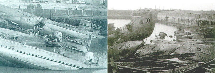 No obstante en diferentes épocas, pasada la Segunda Guerra Mundial, hubo muchos más. Las estrictas estadísticas de guerra dan la impresión de que el 8 de mayo de 1945 marcaba el final de todos los uboote, pero esto no fue así. El propósito de este artículo (que es una actualización del que escribí en 1969 y fue publicado en el INRO Journal “Warship International” en junio de 1970) es ofrecer un registro extenso, de todos los Uboote construidos y comisionados por Alemania, que fueron rendidos al finalizar la guerra, o fueron internados y capturados durante la guerra, o de aquellos que fueron reflotados posteriormente, ya fuese para ser desguazados o utilizados. Un total de 156 uboote serían rendidos a los aliados al finalizar la guerra en Europa en mayo de 1945. De estos, 155 fueron uboote construidos en Alemania, y otro era un sumergible holandés capturado y utilizado por los alemanes (UD-5). Cuando la guerra con Japón finalizó en agosto de 1945, siete sumergibles rendidos bajos la bandera de la Armada Imperial Japonesa eran uboote Alemanes. También eran uboot (en referencia a sumergible alemán) el U505 y el U571, capturados durante la guerra por los Estados Unidos y la Royal Navy respectivamente. Los uboote rendidos, incluyen a los U1406 y U1407, que eran del Tipo XVIIb, un diseño avanzado de submarino propulsado por peróxido de hidrógeno, que fueron rendidos en Cuxhaven el 5 de mayo de 1945 (pero hundidos en el mismo puerto el día 7 de mayo). Aunque estos dos últimos fueron reflotados en junio de 1945, serían incluidos junto al resto de uboote rendidos, y por lo tanto en todas las decisiones tomadas sobre el destino final de la flota submarina de la Kriegsmarine. |