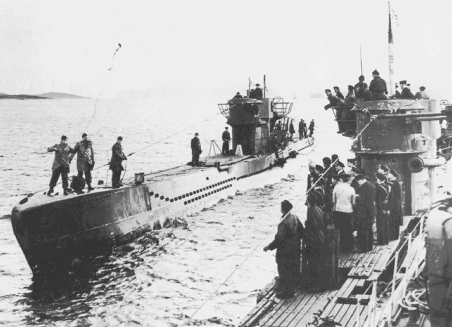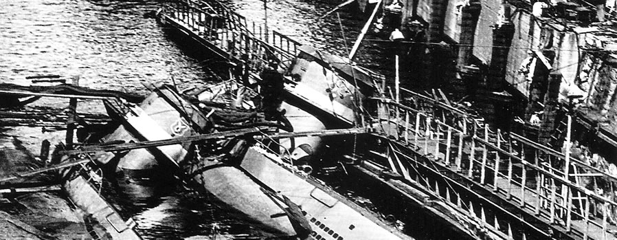 A la izquierda el U236, a la derecha el U237 tras resultar hundidos mientras se encontraban en un dique flotante en Kiel (14/05/43) Imagen de la revista "Uboot im Focus". |