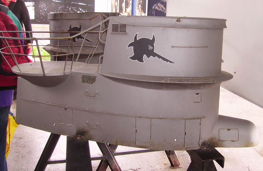Una carpa alargada de color gris acero, proteje el submarino. Fuera de la carpa está la replica de 11 mts que se utilizó para las escenas de navegación (se vieron forzados a utilizar esta solución después de que se les hundiera en la bahía de la rochelle el U-boat a tamaño real) y el modelo de 5 mts del tanque de agua para las tomas submarinas. La guia nos lleva hasta un extremo de la carpa donde se abre una puerta y nos previene de que cuidado con los golpes porque allí dentro nada es de cartón piedra, si no que es acero. Esta vez no quiero cometer el error de antes y me quedo el último. Ya han entrado todos. Llega mi turno... |