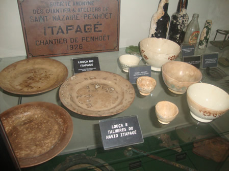 Era Noviembre de 2009 cuando desembarqué en el Aeropuerto Internacional Zumbi dos Palmares, en la hospitalaria Maceió. Había contactado con Wagner del centro Ecoscuba para un buceo en el pecio del Itapagé. Llevó algún tiempo organizar el grupo de buzos y el barco que nos llevaría hasta el lugar, así como se arregló todo, pagué el avión. Lo sabía casi todo sobre el Itapagé, pero quería más. Como tenía algunos días libres, decidí realizar un intenso trabajo de búsqueda de objetos, documentos y periódicos. Estaba embarcado en un viaje al pasado. Así que fui al Museo de la II Guerra Mundial, situado en el interior del acuartelamiento de la 20ª Circunscripción del Servicio Militar. También visité el Archivo Municipal, la Biblioteca Pública Municipal, el Instituto Histórico Geográfico de Alagoas y el Cementerio de Nuestra Señora de la Piedad. Hice de este modo un fantástico retorno en el tiempo a través de las amarilleadas páginas del periódico Gazeta de Alagoas y otras fuentes. Un dato interesante: A pesar de que el naufragio ocurrió el 26 de Septiembre, solo a partir del 2 de Octubre empiezan a aparecer noticias sobre el siniestro. La misma situación que pude comprobar en Porto Alegre leyendo los periódicos del Correio do Povo de Septiembre a Octubre de 1943. En el Museo de la II Guerra Mundial, espacio cultural que fue organizado en 1996 por la Mayor Elza Cansanção de Medeiros, enfermera voluntaria de la FEB, pude ver diversos objetos recuperados del Itapagé. Uno de ellos es una escotilla de latón y otro es la placa con el nombre del buque, fabricante y fecha. Existe también algún plato, cuchillos, una pipa, un pasamanos, botellas de cerveza, peines, tazas, ampollas de vidrio, etc. |