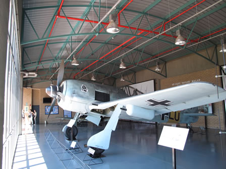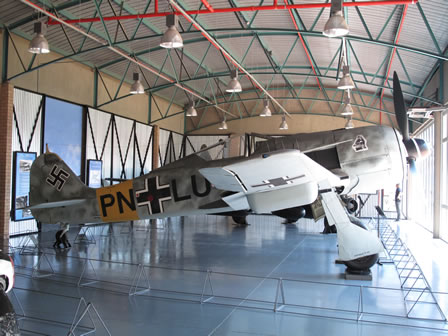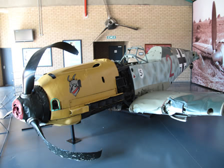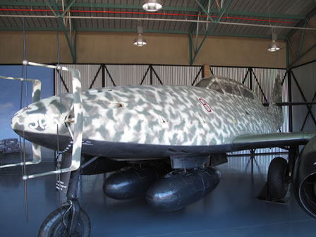 Y tanto es así que lo primero que uno encuentra nada más entrar es una nave donde están expuestos los restos de un Bf-109E del JG26 que realizo un aterrizaje forzoso en Gran Bretaña durante la Batalla de Inglaterra, un FW-190A del 2/JG11 así como el Me-262B. |