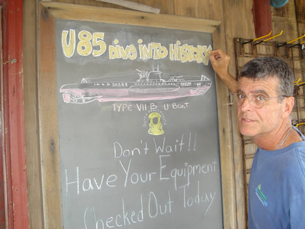 En 2003 buceé los restos del U1277, hundido por su propia tripulación en 1945, que se encuentra cerca de una playa de Oporto (Portugal). Una inmersión emocionante a 32 metros de profundidad en unas aguas heladas. En 2006 visité al U352 hundido en combate en 1942 cerca del faro de Lookout en Carolina del Norte (USA). Ese mismo año visité también el U505, una visita más fácil ya que se encuentra en el Museo de la Ciencia y la Industria (Science and Industry) de Chicago. Pero aún quedan más uboote. En 2008 inicié un nuevo proyecto y en agosto, en pleno verano americano, desembarqué en Nags Head, Carolina del Norte. Intentaría otra vez bucear los restos del U85, inmersión que tuve que anular en 2007 a causa del paso del huracán Gabrielle (2). |