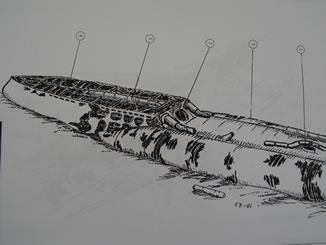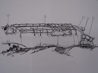 Iniciamos el regreso ya que será necesario subir por el cabo que hay entre el Go-between y la torreta del U85. De regreso, casi junto a la torreta veo una gran deformación en el casco de presión como si un puño inmenso hubiera aplastado el casco de fuera hacia dentro. ¡Son los efectos de una de las cargas de profundidad lanzados por el Ropper! También cerca del punto donde se une la torreta con el casco veo un agujero producido por un proyectil procedente de la artillería del USS.Ropper, el casco en ese punto tiene un espesor de unas 0,88 pulgadas. Herida de muerte para el uboot. En total realicé dos inmersiones en el U85, ¡Una experiencia extraordinaria! |