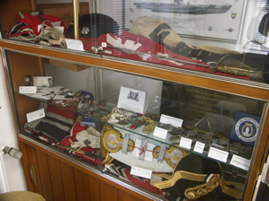 Empezamos de nuevo con la sala dedicada a Otto Hersing, Showell nos aclaró que el mobiliario de la “sala Hersing” era el propio despacho personal de Hersing cedido al museo tras su muerte. Seguimos visitando las salas que forman el museo, que más que un museo, es como un almacén de material uboot y de la Kriegsmarine. Todo esta lleno de objetos, uniformes, medallas, banderas y centenares de piezas más que nos mantenían con la boca abierta. Lo mejor de todo, Showell gustosamente nos ayudo en nuestras dudas y respondio a las preguntas que ante tal cantidad de información se nos presentaban. El museo consta de distintas salas dedicadas a temas en particular; la sala de la artillería, la de los mercantes corsarios, la pared dedicada a Brandi y al U617, una sala repleta de revistas y artículos uboote que según Jak nadie ha sido capaz de ordenar, la dedicada a los uniformes, a las maquetas… Ni falta decir que ¡cada palmo de pared está lleno!. |