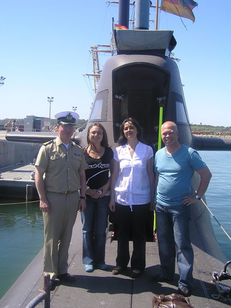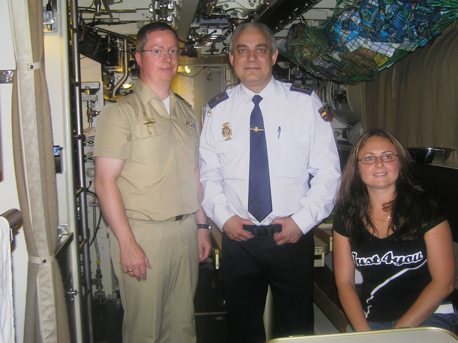 No quiero finalizar estas líneas sin mostrar mi agradecimiento personal al Agregado de Defensa de la Embajada Alemana en España, Oberst i.G.Elmar Auth (Coronel del Ejército), de quien partió la invitación inicial para visitar el submarino, al Jefe de la Oficina de la Agregaduría Militar Stabsfeldwebel Klaus Fargel (Subteniente), quien gestionó personalmente los detalles de la visita a la Base de Rota y que nos hizo de intérprete, así como al Capitán de Corbeta al mando del U34, quien dedicó su tiempo a enseñarnos el submarino por dentro, facilitándonos el poder realizar el reportaje fotográfico en el interior de su unidad. |
