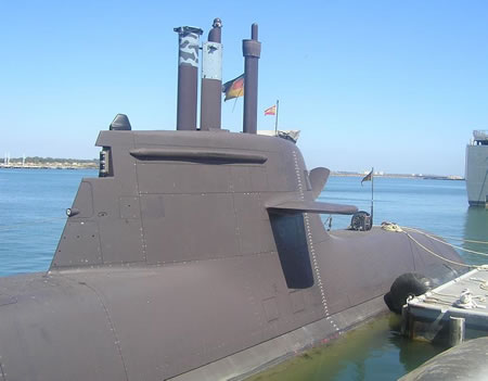 El pasado día 10 de mayo pude realizar uno de los mayores deseos en mi larga vida dedicada a los Uboote; visitar el interior de un submarino alemán. Dando cumplimiento a la amable invitación de la Embajada Alemana en España, y en compañía de mi esposa, me dirigí hacia Rota (Cádiz), en cuya base naval estaba ya fondeado el U34, una verdadera joya naval. El U34 es uno de los 4 submarinos de la clase 212-A con que cuenta la Armada Alemana, y cuyos numerales son: U31 (S181), U32 (S182), U33 (S183) y U34 (S184). Como la noche anterior nos habíamos quedado a dormir en la villa de Rota, aprovechamos la mañana para visitar las maravillosas playas de la ciudad y dar un paseo por sus tranquilas calles. |