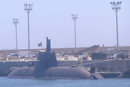 Antes de abandonar la cubierta nos muestra, abriendo una trampilla en la banda de estribor, uno de los tanques que contiene el oxígeno necesario para hacer funcionar el sistema AIP. El propio comandante nos acompaña a tierra y se despide de nosotros estrechándonos su mano y saludando militarmente. Le devuelvo el saludo. |