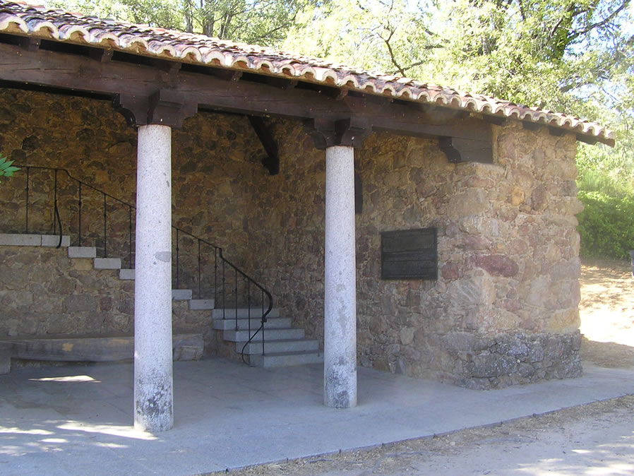 Una vez llegamos a Cuacos de Yuste, giramos a la izquierda, iniciando un ligero ascenso entre árboles aromáticos, y allí, a unos de mil metros del núcleo urbano, localizamos el recinto. La entrada se encuentra situada en el margen derecho (según subimos hacia el Monasterio, en el que el Emperador Carlos V pasó sus últimos días de vida) , y frente a la misma hay un pequeño descampado, ideal para dejar nuestro vehículo. Lo primero que nos llama la atención es la cancela metálica, con su pátina de herrumbre, que encontramos abierta –suponemos que permanecerá en ese estado durante la mayor parte del día-, incrustrada en un muro pétreo rodeada de abundante vegetación. |