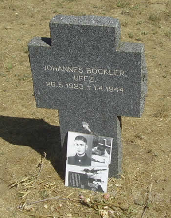 | Nos llamó poderosamente la atención encontrar algunos huecos entre las filas de cruces, como si hubiesen sido extraídas, quizás por los familiares, para trasladarlas cerca de ellos. También encontramos una cruz, perteneciente al Uffz. JOHANNES BOCKLER, a la que alguien había dejado a sus pies una foto en blanco y negro de un joven, suponemos que del difunto. El objeto de nuestra visita, el U-77, del tipo VII-C, fue hundido el día 29 de marzo de 1943 frente a las costas de Calpe por 2 aviones ingleses basados en Gibraltar. De su dotación fallecieron 36 hombres, 2 desaparecieron y otros 9 lograron ser rescatados por marineros españoles. |