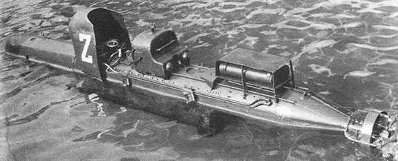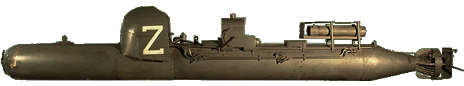 El “maiale” sufrió grandes modificaciones a consecuencia de las pruebas efectuadas por la flotilla. El torpedo que surgió de esta evolución tenia unos seis metros de largo por medio de diámetro. Lo tripulaban dos hombres, con las piernas metidas en estribos, y el piloto quedaba protegido por un parabrisas de plástico montado ante la proa. La velocidad máxima del torpedo era de dos millas y media por hora, su radio de acción alcanzaba las diez millas, y la profundidad de inmersión quedaba limitada a unos treinta metros. El torpedo se sumergia o emergia llenando o vaciando un depósito por medio de bombas eléctricas. |