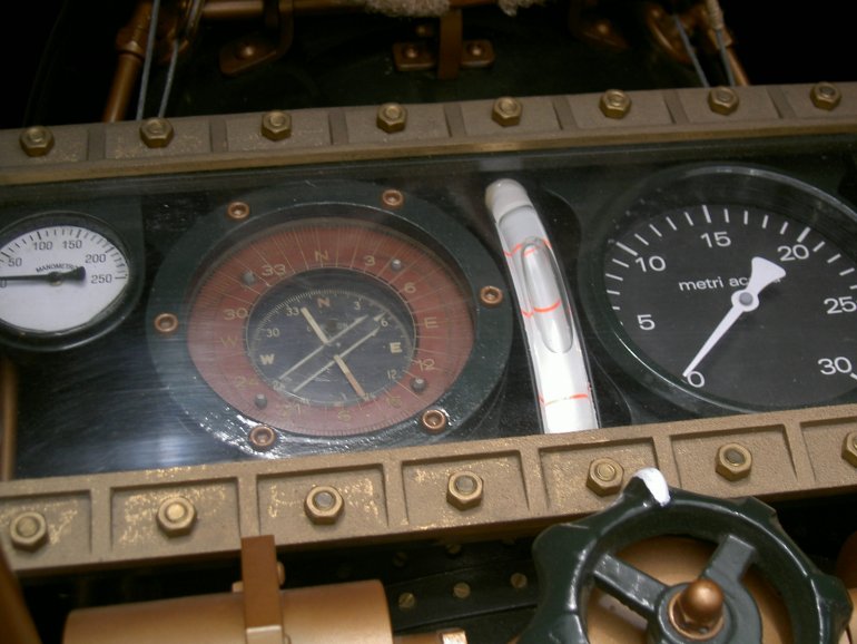 Un acumulador de sesenta voltios cuidaba de la propulsión. Los mandos eran luminosos y podian ser consultados de noche y bajo el agua. |