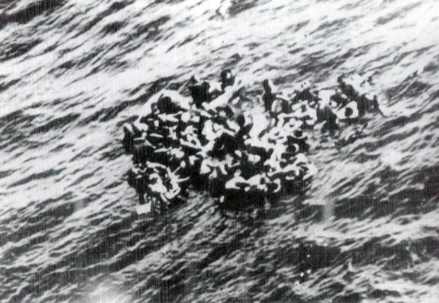 Instantes después llegaba un Sunderland III del 228° escuadrón, pilotado por el Subteniente W.Franklín, que fue testigo desde el aire del rescate de los náufragos por los pesqueros “Virgen de Covadonga”, “San Francisco” y “La Concha”, de Estaca de Bares, y el “San Pedro”, de O Barqueiro. En breve, tres Junker 88 R-2 aparecieron en el horizonte enfilándolo directamente. A las seis de la tarde, tras una enconada y desigual persecución, el Sunderland era derribado por el avión del Teniente Albrecht Bellstedt, líder del segundo escuadrón del Zerstorergeschwader. Franklin tuvo el tiempo justo de radiar el siguiente mensaje: "Atacado por tres aviones enemigos 43° 50'N, 01° 30'W. I 755". Sería su ultima emisión. Segundos después el bombardero, partido en dos, se estrellaba contra el agua. |
