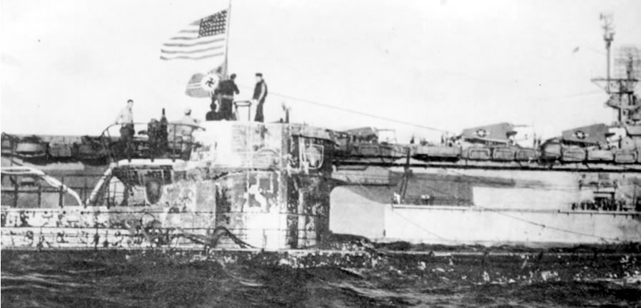 El uboot capturado era el U505, que había sido obligado a emerger el día 4 de junio de 1944 por el grupo de escolta aerotransportado de la US. Navy a 150 millas al oeste de la costa africana. El U505 sería remolcado (con una tripulación de la USN), primero por el portaviones “USS. Guadalcanal” y luego por el remolcador “USN. Abnaki”, 2.500 millas hacia la base naval de Port Royal Bay, en Bermuda, para ser examinado. El U505 permanecería allí hasta el final de la guerra y para mantener que el U505 había sido hundido y no capturado, fue renombrado USS. Nemo. Tras la guerra el U505 sería trasladado a los astilleros de la US. Navy de Portsmouth, llegando allí el 24 de septiembre de 1945. Inicialmente se propuso que el U505 fuera utilizado como blanco en ejercicios de lanzamiento de torpedos y de fuego de artillería. No obstante, esta propuesta llamaría la atención del Admirante Gallery (que comandaba el “USS. Guadalcanal” cuando el U505 fue capturado) y a través de su iniciativa, el U505 fue eventualmente donado por el Gobierno de los Estados Unidos al Museo de Chicago donde pasaría a formar parte de una exhibición permanente como memorial de guerra. Esto se cumpliría el 25 de septiembre de 1955 y el U505 aún sigue allí. |