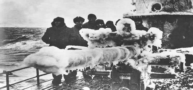 La corbeta abrió fuego y trató de embestir al Uboot. Para el comandante de este, era obvio que tratar de sumergirse en ese momento no era posible por lo que trató de escapar a la máxima velocidad en superficie. La "Crocus" no desistió en su empeño y trató de embestir al Uboot de nuevo. Sin embargo, la hábil maniobra del U333 sorprendió a la corbeta que le perdió y navegó varios minutos a toda velocidad alejándose de este. Esto permitió al U333, a pesar de que sufría daños menores, sumergirse hasta el fondo (a unos 100m). Más tarde, tras subir a la superficie, el U333 pudo evitar a la corbeta (todavía cerca) y dejar el área. Esta no fue la única aventura del U333. El 6 de mayo había sido detectado por un destructor americano, el cual le atacó con varias decenas de cargas de profundidad. El U333, gracias a su excelente maniobrabilidad, evitó la destrucción. Esto no fue una tarea fácil ya que en la zona donde ocurrió el ataque, la profundidad máxima era de sólo 30m. Los sumergibles que operaban en el Atlántico Sur, cerca del área de Cape Town, hundieron, desde el 7 de octubre, 28 buques (con un tonelaje por encima de 190.000 BRT) en unas pocas semanas. El U178 (Kpt.z.See Hans Ibbeken) hundió el "Duchess Atholl" (20.019 BRT) en esta área. Indudablemente, debido a la situación de la guerra en el frente del este, el ataque a los convoyes que se dirigían a los puertos soviéticos de Murmansk y Archangelsk iba a ser crucial. En los primeros días de enero, un grupo de Uboote con nombre en clave “Ulan”, compuesto por el U134 (Kptlt. Rudolf Schnedel), U454 (Kptlt. Burkhard Härklander) y U584 (Kptlt. Joachim Deecke), atacaron por vez primera un convoy de suministros que se dirigía a Murmansk y Archangelsk. El convoy PQ7 fue atacado cerca de la Isla del Oso (Bear Island). El día 20 de enero, el único éxito fue logrado por el U134, que hundió el buque británico "Waziristan" (5.135 BRT). El siguiente convoy en esa ruta, el PQ8, fue atacado, comenzando del día 17, por el mismo grupo de Uboote. El U454 hundió el británico "Harmatris" (5.395 BRT) y al barco armado ruso "Yenisei" (RT 68), y, más tarde ese mismo día, al destructor británico "Matabele" y a un barco cargado de munición, que exploto cuando un torpedo lo alcalzó. El 10 de enero, el U584 hundió al sumergible ruso "M175" (ex M92) cerca del Cabo Norte. Los siguientes convoyes PQ9, PQ10 y PQ11 navegaron a través de esa área sin pérdidas. El 23 de marzo, un hidroavión Bv138 de patrulla perteneciente al 2./406 detectó el convoy PQ13 compuesto por 19 barcos. El día 24, durante un ataque al convoy, el U655 (Kptlt. Adolf Dumrese) fué hundido, con la pérdida total de la tripulación, tras ser embestido por el barco británico "Sharpshooter". Tras unos días tormentosos, el día 28, el convoy fué detectado de nuevo por un hidroavión Bv138 y los siguientes Uboote fueron enviados a atacar a los desperdigados barcos: U209 (Kptlt. Heinrich Brodda), U376 (Kptlt. Friedrich Karl Marks), U435 (Kptlt. Siegfried Strelow), U436 (Kptlt. Gunther Seibicke), U454 (Kptlt. Burkhardt Härklander), U456 (Kptlt. Max Martin Teichert), U585 (Kptlt. Bernhard Lohse) y U589 (Kptlt. Hans Joachim Horrer). Entre el 8 y el 24 de abril, se llevaron a cabo operaciones contra los convoyes PQ14 y QP10. Durante una acción contra el QP11, el 30 de abril, el U456 alcanzó al crucero británico "Edinburgh" con 2 torpedos y, el 1 de mayo, fue rematado por los destructores Z24 y Z25. El 24 de mayo, los sumergibles detectaron barcos pertenecientes al convoy PQ16. El día 26, el U703 (Oblt.z.See Matthias Brünner) hundió al "Syros". El barco, cargado hasta los topes con munición, explotó y toda la tripulación desapareció. Durante los ataques a este convoy, muchos éxitos fueron alcanzados por los aviones de la Luftwaffe, que hundieron 6 barcos. En la campaña contra los convoyes, el mayor éxito fue, sin duda, el logrado contra el PQ17 a principios de julio. Este era, sin duda, el mayor convoy que se había reunido hasta la fecha. Incluía 36 mercantes, 1 cisterna, 3 barcos de rescate y varios escoltas. El convoy partió de Islandia el 27 de junio (tres barcos tuvieron que darse la vuelta por problemas mecánicos) y, el 1 de julio, a las 14.32 horas fué detectado por un hidroavión Bv138 perteneciente al 3./906 (comandado por el suboficial Egon Reper, con el Leutnant zur See von Ahlefeld como observador) en el cuadrante AB 7195 (posición geográfica 71º11’N, 05º59’E). Debido al mal tiempo y a la escasez de combustible, el hidroavión no pudo observar el convoy durante mucho tiempo y tuvo que volver a la base. Otro hidroavión se hizo cargo de esta tarea horas más tarde. El día 2 de julio, hidroaviones Heinkel He115 del 1./406 llevaron a cabo el primer ataque con torpedos. Durante esta ataque, el avión del comandante de la unidad Kapt. Vater, fue abatido a unos 2.000m por delante del convoy. Tres miembros de la tripulación se las arreglaron para subir a uno de sus botes salvavidas a pesar del furioso fuego que recibían por parte de los buques de escolta. En ese momento, otro He115 (comandado por el Oberleutnant Charly Burmeister, y el Feldwebel Konny Harbin como piloto) aterrizó cerca del bote y subieron a bordo a la tripulación derribada. A pesar del volumen de fuego desplegado contra ellos por los escoltas del convoy, pudieron despegar y volver a la base sin problemas. El 2 de julio, a las 20.00 horas, una agrupación de barcos de la Kriegsmarine, designada como “Kampfgruppe 1”, zarpó, iniciando así la operación “Rösselsprung”, cuyo objetivo era la destrucción del convoy. Dicha agrupación estaba compuesta por el acorazado "Tirpitz", el crucero pesado "Admiral Hipper", varios destructores y torpederos, siendo protegidos por varios buques antisubmarinos y aviones de la Luftwaffe. Los hidroaviones enviaron señales de radio que dirigieron a un grupo de sumergibles, cuyo nombre en clave era “Eisteuf