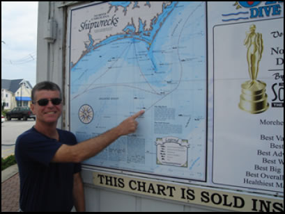 ![]() El autor del artículo señalando la posición del pecio del U352 |