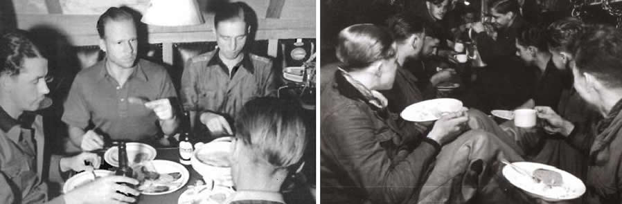 ![]() Tripulantes comiendo en el interior de un viejo sumergible. |