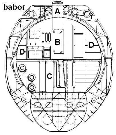 En este tipo de buque existían distintos compartimentos más o menos amplios y cómodos, destinados a las diferentes categorías de los tripulantes, y cuyos espacios habían sido diseñados igualmente para descansar, comer o relajarse. Se eliminaron por tanto los compartimentos de descanso común en beneficio de lugares relativamente más pequeños en el que los tripulantes fuera de servicio podrían juntarse para descansar o charlar con un mayor grado de intimidad. |