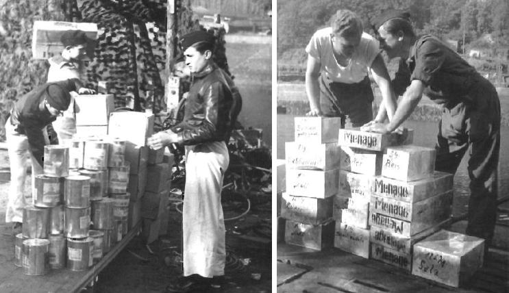 ![]() Tripulantes embarcando provisiones a bordo de un U-boot |