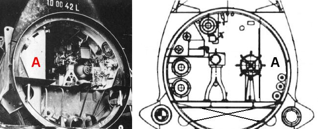 Arriba, a la izquierda, corte de la sección 4 (alojamiento de popa de la tripulación) y a la derecha fotografía de la misma sección. |
