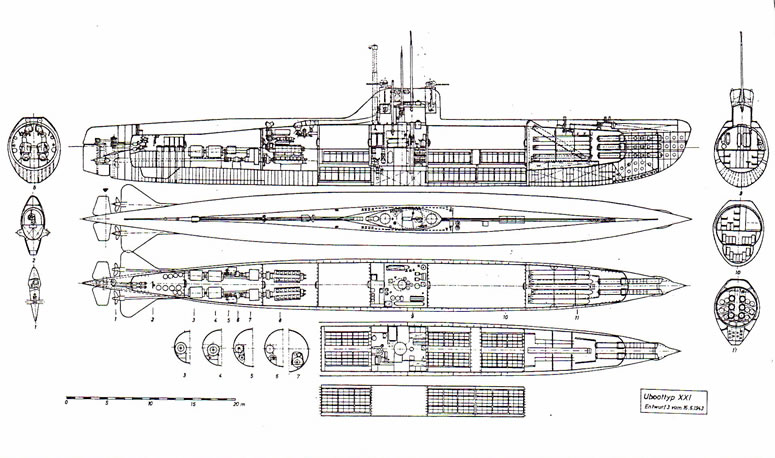 Fuente: U-Boottyp XXI de Eberhard Rössler. |