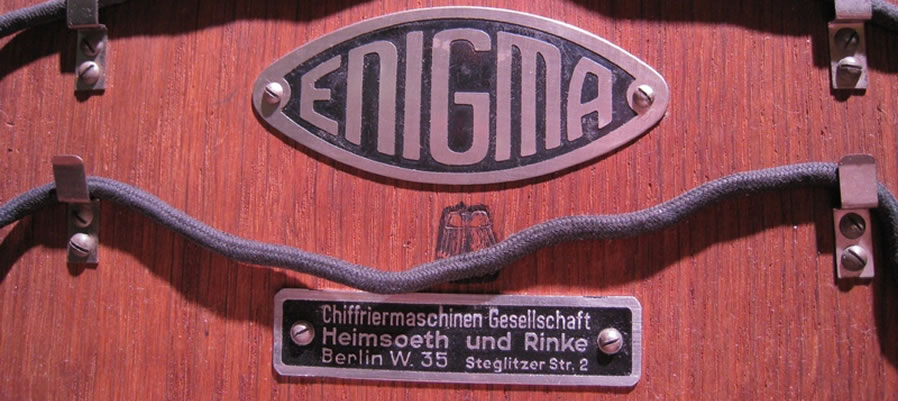 de Gewerkshaft Securitas, donde trabajaba Scherbius. En esencia es un dispositivo electromecánico para cifrar y descifrar mensajes. Estaba orientada a los hombres de negocios para poder transmitir secretos comerciales. La Wehrmacht se interesó por ella y la transformó para usarla en sus comunicaciones (c. 1935). Básicamente consta de un teclado con las veintiseis letras del alfabeto, un reflector, tres rotores (o cuatro en la versión de la Kriegsmarine) y un panel con las correspondientes veintiseis letras con una pequeña bombilla cada una para señalar la correspondencia. |