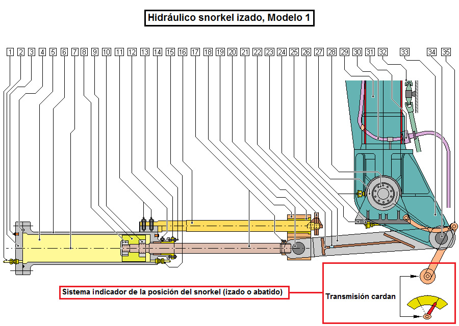 | Sistema hidráulico de izado del schnorchel en el "modelo 1" |