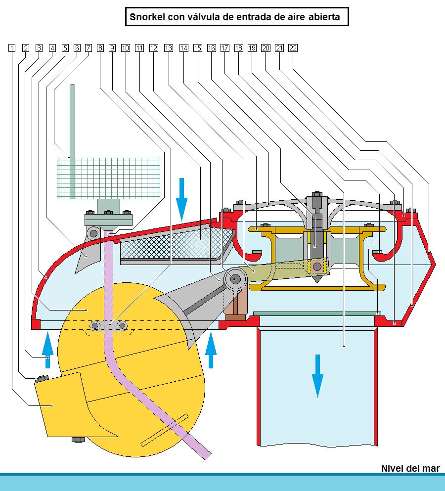 | Sistema hidráulico del schnorchel "modelo 2" |