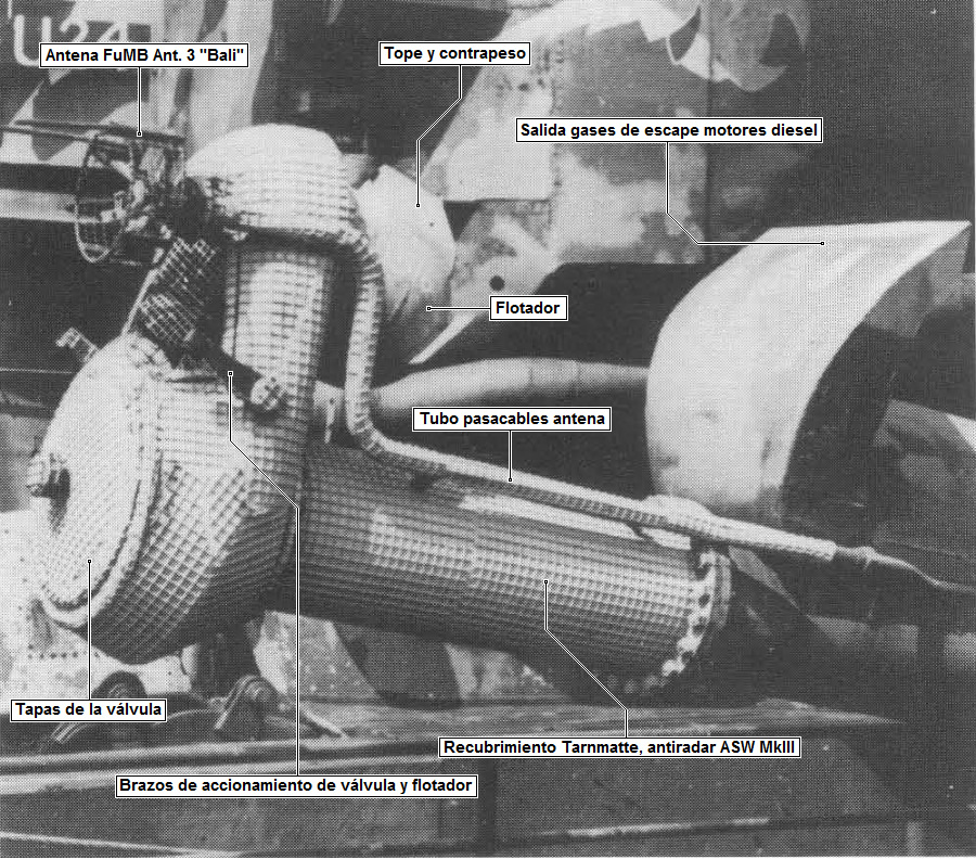 | Foto del schnorchel "modelo 2" en el tipo IX |