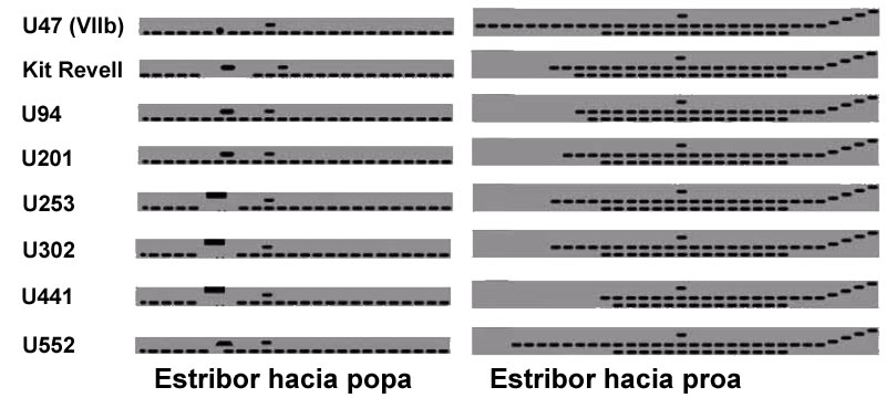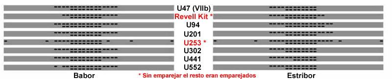 (La banda de babor con las ventilaciones principales de seis tipos VIIc, un tipo VIIb y el Kit Revell) |