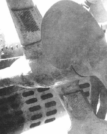 Aunque hay muchas fotos donde se ven claramente estos agujeros no he visto documentos o esquemas dónde se pueda determinar un patrón claro. Lo que si se puede determinar es que el esquema utilizado en el Kit Revell es mucho más simple de lo que eran en realidad. En el Kit Revell los agujeros son rectangulares y en las fotos son ovalados. |