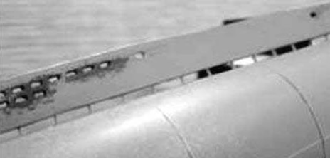 | Estos tres agujeros, situados justo detrás de los tanques de lastre y localizados por encima de ellos, no existen en el Kit Revell. |
