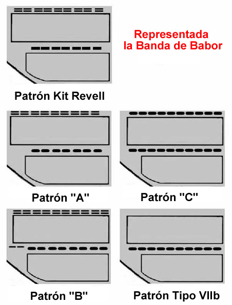 (Los agujeros de tamaño medio situados en la zona central raramente seguían un patrón idéntico en ambas bandas, |