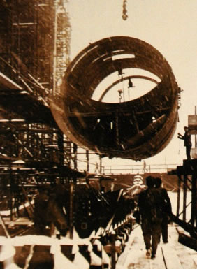 Con el inicio de la construcción del gran bunker de ensamblaje “Valentín”, el cual estaba subordinado al Astillero de Bremen Volcano, Deschimag tenia que fabricar las secciones III, V y VI. Pero como al final de la guerra el bunker estaba aun sin terminar, la construcción y reparación de 6 a 8 submarinos del tipo XXI y las secciones de popa I y III no se pudieron llevar a cabo. A partir de mediados de 1.944 se sucedieron fuertes ataques aéreos. El llevado a cabo por la USAAF el 29-07-1.944 causo grandes daños, la grúa flotante de 100 toneladas, que se necesitaba para colocar las diferentes secciones de los submarinos, recibió daños muy importantes. |