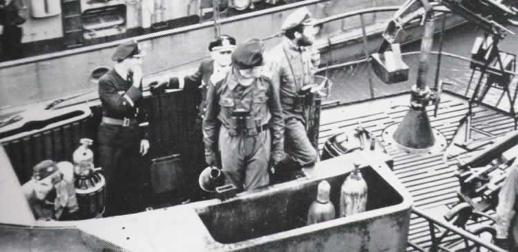 ![]() En la imagen la torreta del U333, en primer plano las botellas para llenar los globos. |