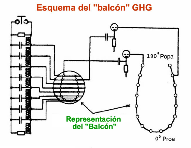 Ya avanzada la guerra se introdujo en los uboote lo que se denominó “balcón” que era una estructura donde estaban instalados los transductores. Este diseño había sido solicitado por el Oberkommando der Marine para conseguir que los uboote pudieran “oír” tanto en inmersión como estando en la superficie. En este “balcón” las dos filas de transductores estaban separadas unos 30 cm. Esta disposición permitía abarcar continuamente todas las zonas, aunque existía una zona de “sombra” situada entre los 150 y los 210 grados. |