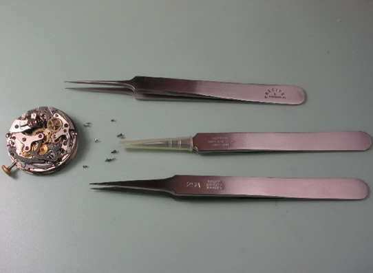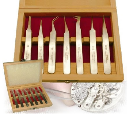 Existen en el mercado infinidad de adminículos que podrían utilizarse con éxito, pero habiendo probado unos cuantos de ellos podemos concluir que se debe recurrir a lo que está realmente certificado. La relojería es un oficio, para algunos una profesión o un arte, en el que se trabaja con minúsculos mecanismos de precisión, muchas de sus herramientas, o mejor dicho instrumentos, son muy aplicables al modelismo, ya que también en esta actividad se deben manejar elementos demasiado delicados para los dedos de la mano humana que muchas veces requieren de precisión en la manipulación, sobretodo cuando hay que llevarlos a escuetos destinos. Una buenas pinzas nos ayudarán en gran forma, abajo mostramos un juego que abarcaría cualquier espectro de maniobra con piezas diminutas