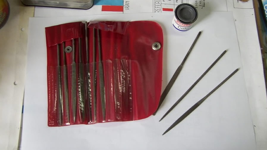 Una vez cortadas, las piezas deben prepararse para la fase de pegado, para lo cual debemos pulirlas o limarlas para desprender los restos del plástico inyectado que pudo haber escapado por los bordes del molde, restos que no solo molestan sino que desmerecen la obra quitándole sustancialmente el ansiado realismo. |