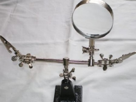 Como se trabaja con elementos muy pequeños, debemos contar con una serie de accesorios que nos permitan primero ver lo que manejamos, y luego poder manipularlo con las mayores garantías. Un buen soporte con una buena lupa son esenciales para tal fin. Algunos de estos elementos incluso tienen una suerte de brazos sujetadores, que se pueden utilizar para sostener una pieza en cuestión e irla trabajando mientras la observamos a través del lente. |